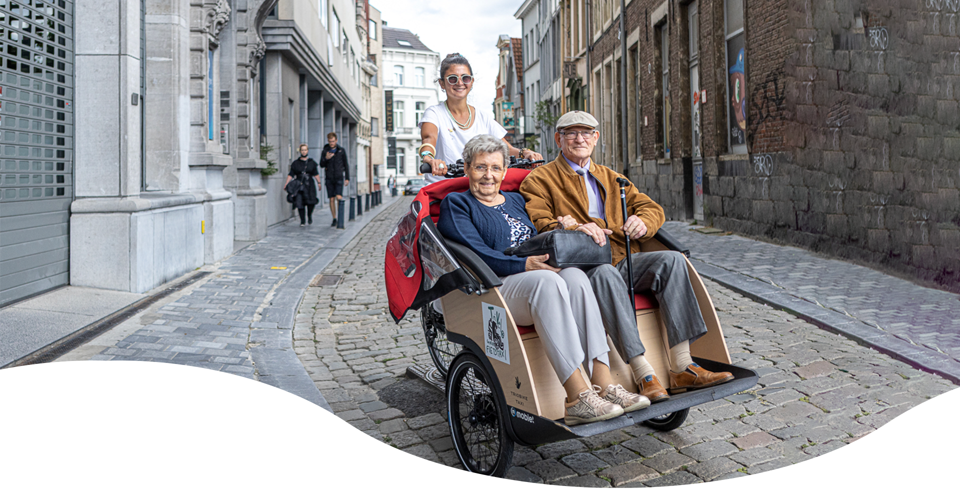 Met riksja’s, rolstoelfietsen en andere aangepaste fietsen brengen heel wat vrijwilligers in verschillende steden minder mobiele personen van A naar B (bv thuis naar de arts, het lokaal dienstencentrum of restaurant).